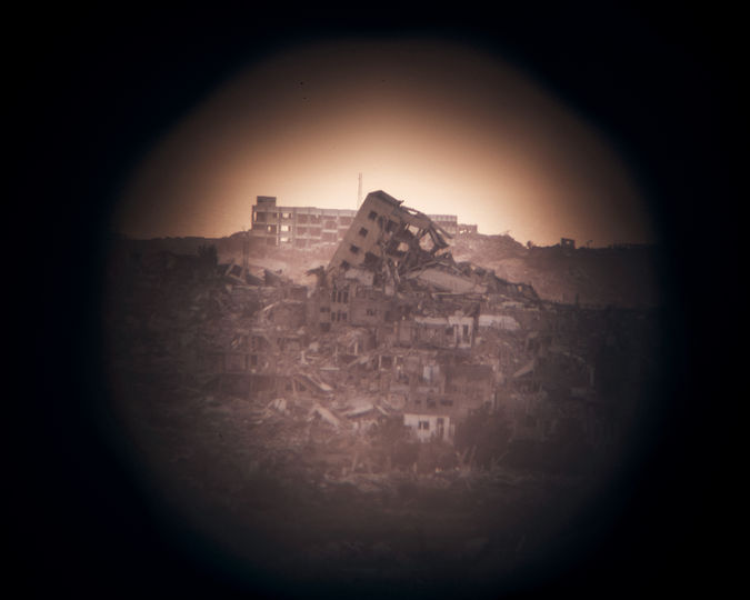 Images du point de vue de Sdérot surplombant le nord de Gaza, d'où les Israéliens viennent observer la guerre et les destructions qui ravagent la bande de Gaza. 17 juillet 2025. © Lucien Lung / Riva-Press