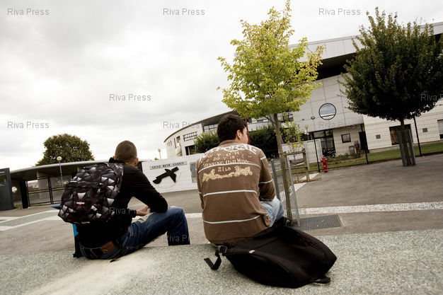 Légende : Gonesse, le 24 septembre 2009 - Des lyceens du lycee Rene Cassin de Gonesse devant leur etablissement.