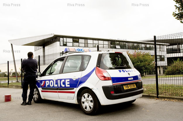 Légende : Gonesse, le 24 septembre 2009 - Devant le lycee Rene Cassin de Gonesse ou des policiers sont postes sur decision du maire apres plusieurs agressions sur des eleves ces derniers temps.