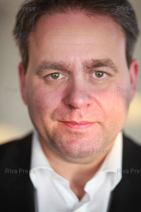 Légende : Xavier Bertrand, president de l'UMP, pose au siege de l'UMP. Paris, FRANCE-06/01/2010