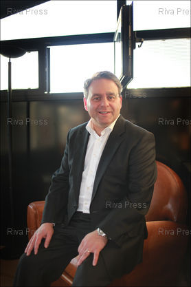 Légende : Xavier Bertrand, president de l'UMP, pose au siege de l'UMP. Paris, FRANCE-06/01/2010