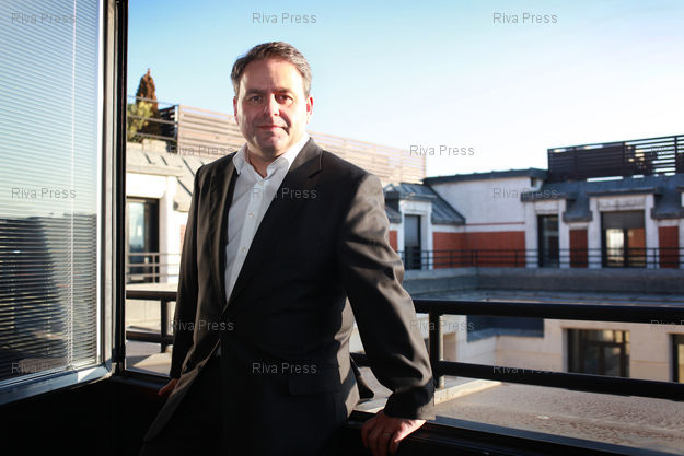 Légende : Xavier Bertrand, president de l'UMP, pose au siege de l'UMP. Paris, FRANCE-06/01/2010