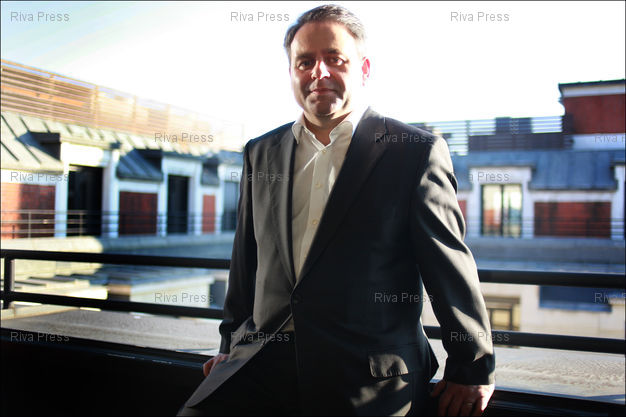 Légende : Xavier Bertrand, president de l'UMP, pose au siege de l'UMP. Paris, FRANCE-06/01/2010