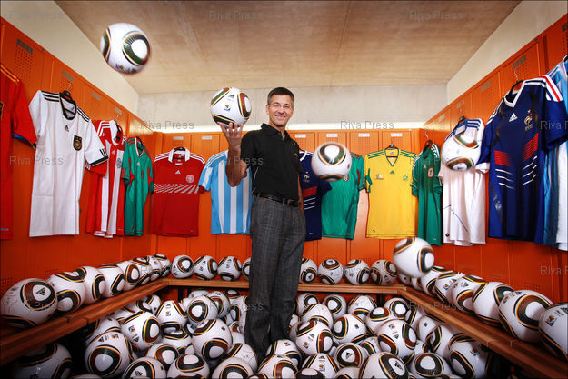 Légende : Herbert Hainer, CEO of Adidas, poses in the locker room of the stadium of the head office of Adidas. Nuremberg, Germany-11/12/2009