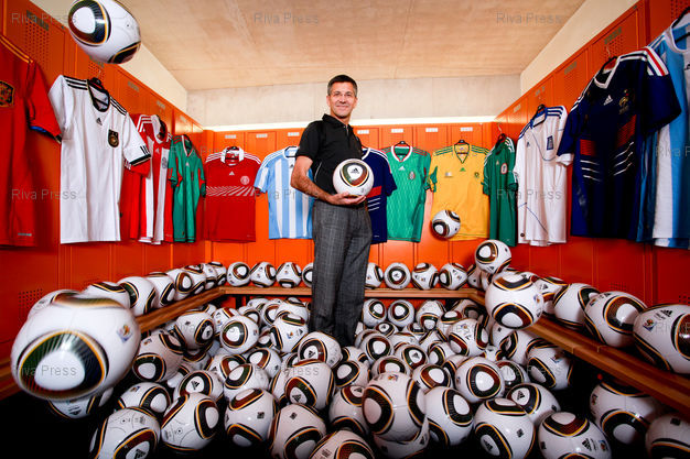 Légende : Herbert Hainer, CEO of Adidas, poses in the locker room of the stadium of the head office of Adidas. Nuremberg, Germany-11/12/2009