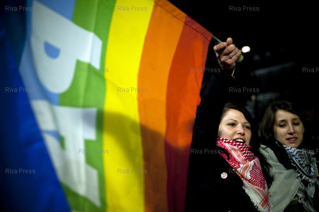 Légende : 11/11/2009 - PARIS, France - Des personnes manifestent sur les Champs Elysées contre la venue à Paris du premier ministre israëlien Benjamin Netanyahu, invité par le président de la République Française.