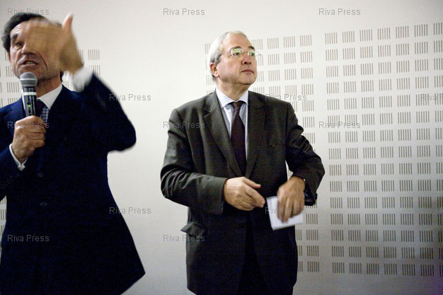 Légende : Paris, le 17 novembre 2009 - Jean-Paul Huchon (D), president socialiste de la region Ile-de-France inaugure rue Falguiere dans le 15eme arrondissement, son local de campagne pour les prochaines elections regionales de mars 2010 ou il sera en lice pour un troisieme mandat. A gauche, Jean-Paul Planchou, president du groupe PS au conseil regional d'Ile-de-France.