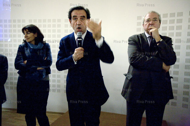 Légende : Paris, le 17 novembre 2009 - Jean-Paul Huchon (D), president socialiste de la region Ile-de-France inaugure rue Falguiere dans le 15eme arrondissement, son local de campagne pour les prochaines elections regionales de mars 2010 ou il sera en lice pour un troisieme mandat. Avec Anne Hidalgo (G), premiere adjointe au maire de Paris et tete de liste PS a Paris aux regionales et Jean-Paul Planchou (C), president du groupe PS au conseil regional d'Ile-de-France.