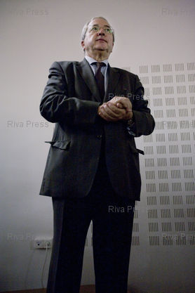 Légende : Paris, le 17 novembre 2009 - Jean-Paul Huchon, president socialiste de la region Ile-de-France inaugure rue Falguiere dans le 15eme arrondissement, son local de campagne pour les prochaines elections regionales de mars 2010 ou il sera en lice pour un troisieme mandat.