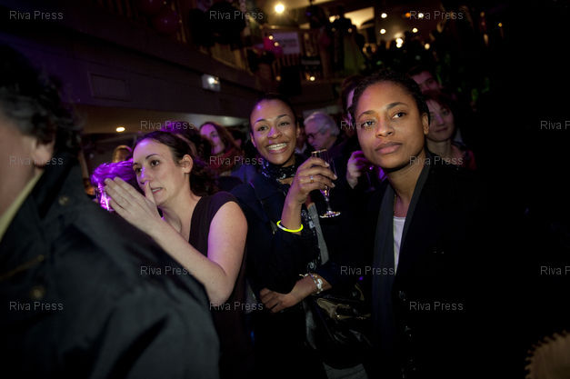 Légende : 21/03/2010 - PARIS, France - Les militants et les candidats de la liste de la gauche et des écologistes pour les élections régionales en Ile de France se retrouvent au bar Le Player (161 rue Montmartre dans le 2ème arrondissement) pour célebrer la victoire au soir du second tour autour de leur tête de liste, le président sortant Jean-Paul Huchon.
