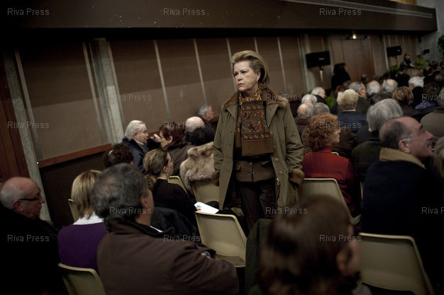 Légende : Paron, le 21 janvier 2010 - Rachida Dati, maire du VIIeme arrondissement de Paris, deputee europeenne et ancienne Garde des Sceaux participe a un debat sur l'identite nationale a Paron, dans l'Yonne.