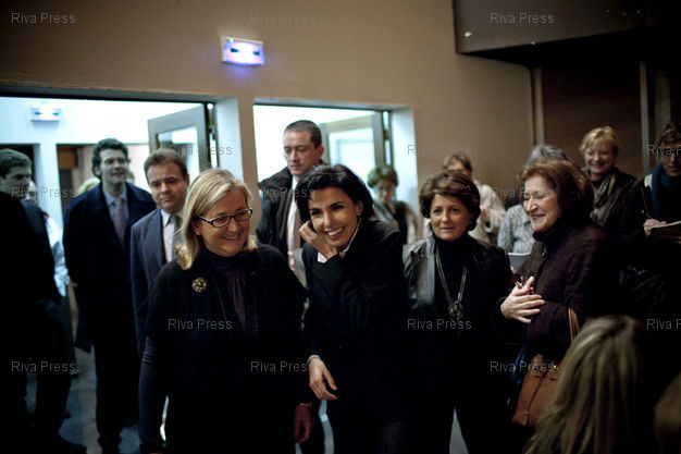 Légende : Paron, le 21 janvier 2010 - Rachida Dati, maire du VIIeme arrondissement de Paris, deputee europeenne et ancienne Garde des Sceaux participe a un debat sur l'identite nationale a Paron, dans l'Yonne.