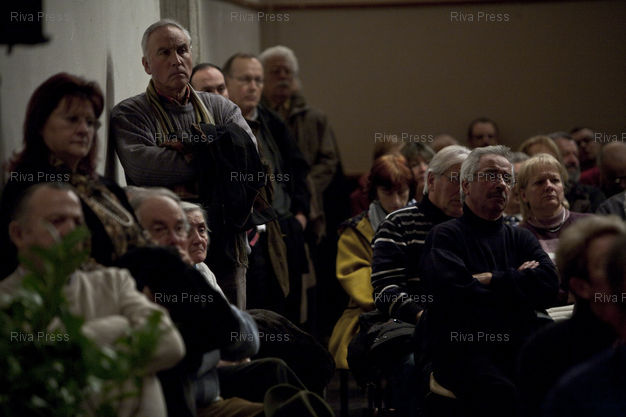 Légende : Paron, le 21 janvier 2010 - Rachida Dati, maire du VIIeme arrondissement de Paris, deputee europeenne et ancienne Garde des Sceaux participe a un debat sur l'identite nationale a Paron, dans l'Yonne.