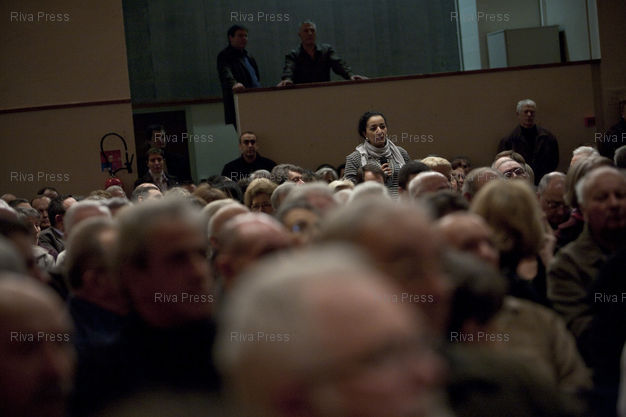 Légende : Paron, le 21 janvier 2010 - Rachida Dati, maire du VIIeme arrondissement de Paris, deputee europeenne et ancienne Garde des Sceaux participe a un debat sur l'identite nationale a Paron, dans l'Yonne.