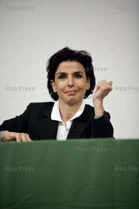 Légende : Paron, le 21 janvier 2010 - Rachida Dati, maire du VIIeme arrondissement de Paris, deputee europeenne et ancienne Garde des Sceaux participe a un debat sur l'identite nationale a Paron, dans l'Yonne.