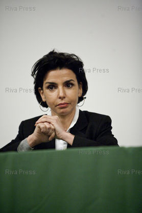 Légende : Paron, le 21 janvier 2010 - Rachida Dati, maire du VIIeme arrondissement de Paris, deputee europeenne et ancienne Garde des Sceaux participe a un debat sur l'identite nationale a Paron, dans l'Yonne.