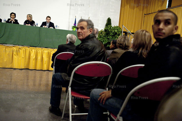 Légende : Paron, le 21 janvier 2010 - Rachida Dati, maire du VIIeme arrondissement de Paris, deputee europeenne et ancienne Garde des Sceaux participe a un debat sur l'identite nationale a Paron, dans l'Yonne.