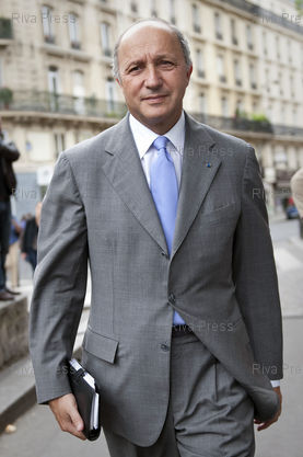 Légende : 08/06/2010 - PARIS, France - Laurent Fabius arrive au Conseil National du Parti Socialiste consacré au vote du projet de rénovation, incluant le non-cumul des mandats et l'organisation des primaires pour la prochaine élection présidentielle.