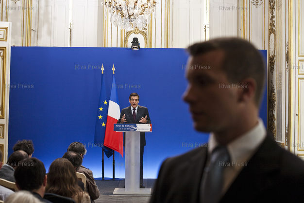 Conference de presse a Matignon de Francois Fillon, premier ministre, au lendemain de la journee de manifestation contre les reformes du gouvernement sur les retraites.