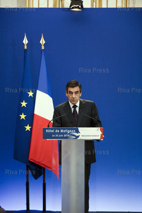 Conference de presse a Matignon de Francois Fillon, premier ministre, au lendemain de la journee de manifestation contre les reformes du gouvernement sur les retraites.