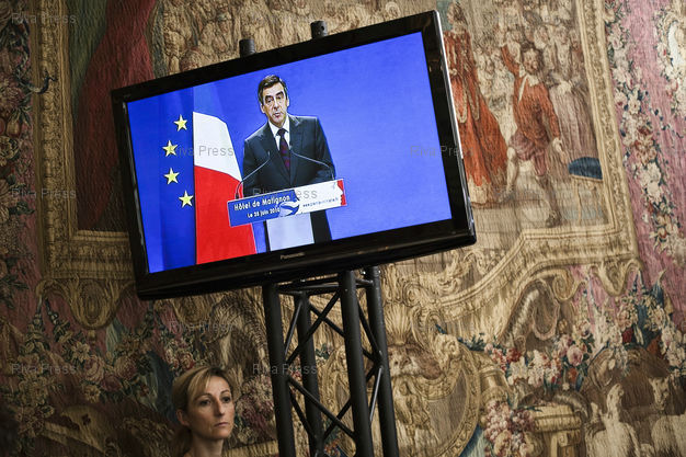 Conference de presse a Matignon de Francois Fillon, premier ministre, au lendemain de la journee de manifestation contre les reformes du gouvernement sur les retraites.