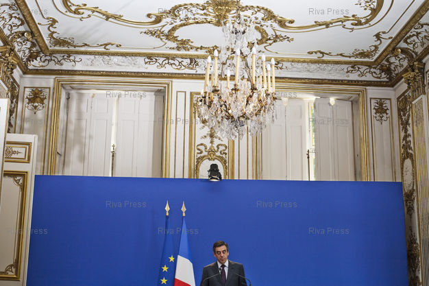 Conference de presse a Matignon de Francois Fillon, premier ministre, au lendemain de la journee de manifestation contre les reformes du gouvernement sur les retraites.