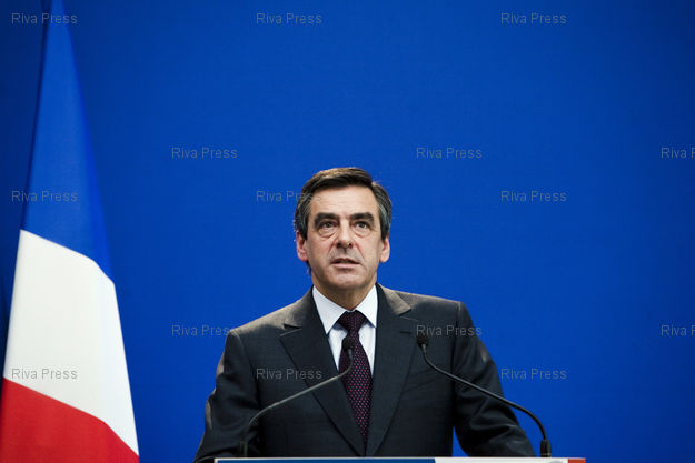 Conference de presse a Matignon de Francois Fillon, premier ministre, au lendemain de la journee de manifestation contre les reformes du gouvernement sur les retraites.
