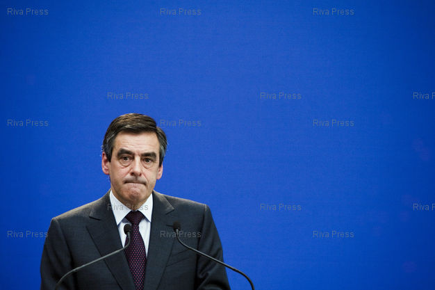 Conference de presse a Matignon de Francois Fillon, premier ministre, au lendemain de la journee de manifestation contre les reformes du gouvernement sur les retraites.