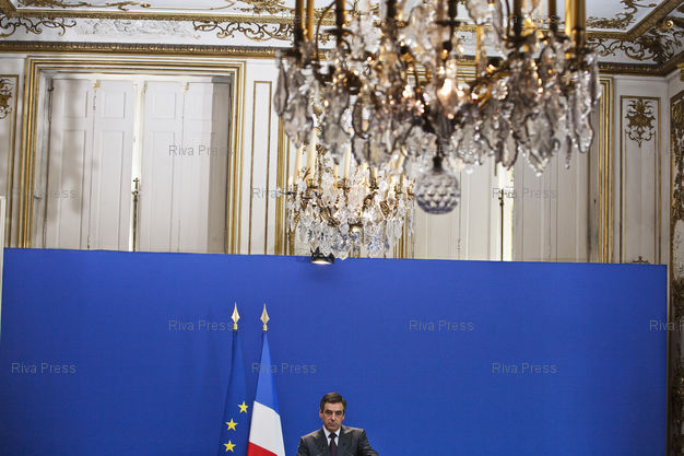 Conference de presse a Matignon de Francois Fillon, premier ministre, au lendemain de la journee de manifestation contre les reformes du gouvernement sur les retraites.