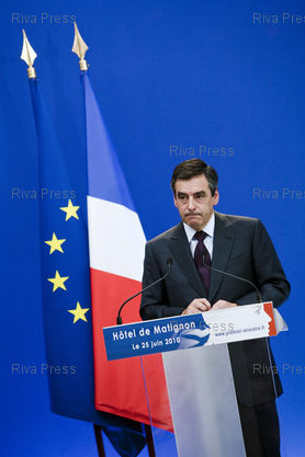 Conference de presse a Matignon de Francois Fillon, premier ministre, au lendemain de la journee de manifestation contre les reformes du gouvernement sur les retraites.