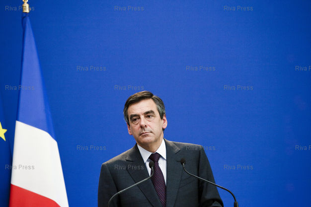 Conference de presse a Matignon de Francois Fillon, premier ministre, au lendemain de la journee de manifestation contre les reformes du gouvernement sur les retraites.