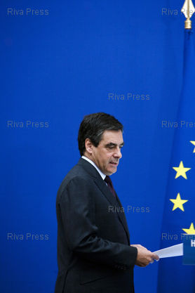 Conference de presse a Matignon de Francois Fillon, premier ministre, au lendemain de la journee de manifestation contre les reformes du gouvernement sur les retraites.