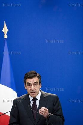 Conference de presse a Matignon de Francois Fillon, premier ministre, au lendemain de la journee de manifestation contre les reformes du gouvernement sur les retraites.