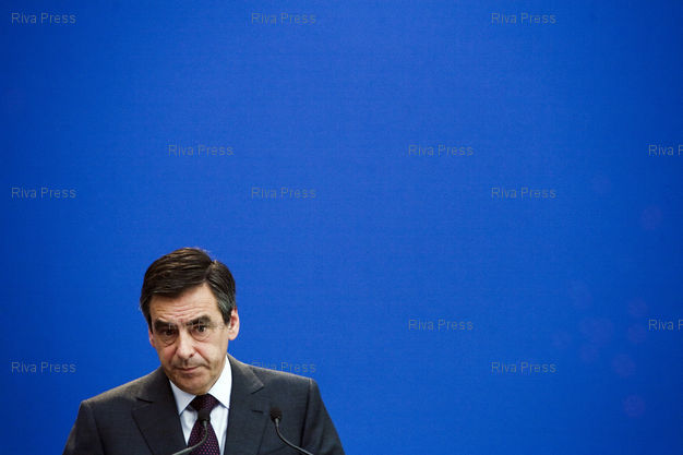 Conference de presse a Matignon de Francois Fillon, premier ministre, au lendemain de la journee de manifestation contre les reformes du gouvernement sur les retraites.