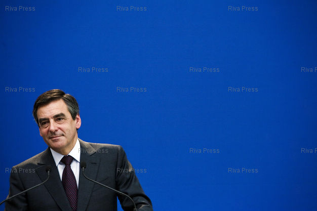 Conference de presse a Matignon de Francois Fillon, premier ministre, au lendemain de la journee de manifestation contre les reformes du gouvernement sur les retraites.