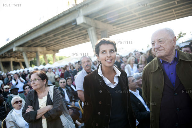 Légende : 18/09/2010 - ARCEUIL, France - Pierre Bergé participe à la 3ème fête de la fraternité organisée par la socialiste Ségolène Royal, réunissant environ 3000 personnes au parc du coteau à Arcueil (Val-de-Marne). Plusieurs ténors de la gauche et du parti socialiste (dont Najat Vallaud-Belkacem sur la photo) étaient également présents.