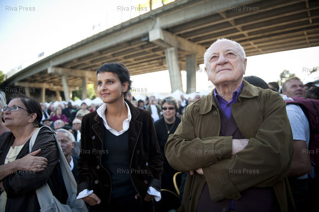 Légende : 18/09/2010 - ARCEUIL, France - Pierre Bergé participe à la 3ème fête de la fraternité organisée par la socialiste Ségolène Royal, réunissant environ 3000 personnes au parc du coteau à Arcueil (Val-de-Marne). Plusieurs ténors de la gauche et du parti socialiste (dont Najat Vallaud-Belkacem sur la photo) étaient également présents.