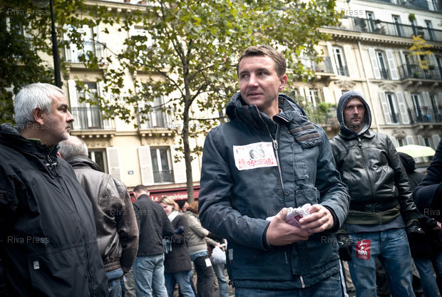 Légende : 16/10/2010 - Paris, FRANCE - Manifestation a Paris contre le projet de reforme des retraites du gouvernement. Olivier BESANCENOT. PHOTO : RIJASOLO/RIVA PRESS