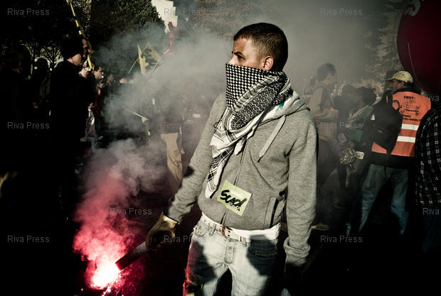 Légende : 16/10/2010 - Paris, FRANCE - Manifestation a Paris contre le projet de reforme des retraites du gouvernement. PHOTO : RIJASOLO/RIVA PRESS