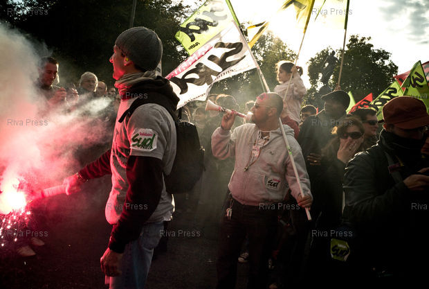 Légende : 16/10/2010 - Paris, FRANCE - Manifestation a Paris contre le projet de reforme des retraites du gouvernement. PHOTO : RIJASOLO/RIVA PRESS