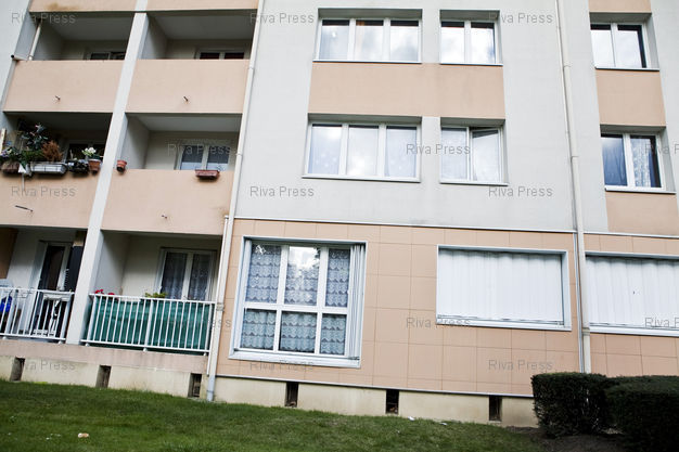Légende : La Verriere, le 24 octobre 2010 - Les fenetres de l'appartement (2e etage, au centre) d'ou onze personnes se seraient "defenestrees" pour des raisons encore non determinees le 23 octobre au petit matin, entrainant la mort d'un bebe de quatre mois.
