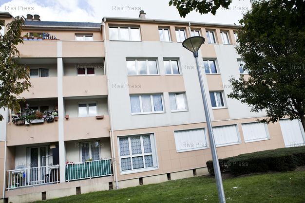 Légende : La Verriere, le 24 octobre 2010 - Les fenetres de l'appartement (2e etage, au centre) d'ou onze personnes se seraient "defenestrees" pour des raisons encore non determinees le 23 octobre au petit matin, entrainant la mort d'un bebe de quatre mois.