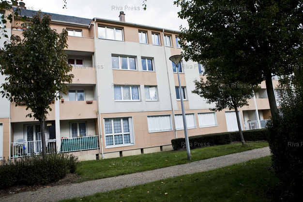 Légende : La Verriere, le 24 octobre 2010 - Les fenetres de l'appartement (2e etage, au centre) d'ou onze personnes se seraient "defenestrees" pour des raisons encore non determinees le 23 octobre au petit matin, entrainant la mort d'un bebe de quatre mois.