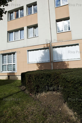 Légende : La Verriere, le 24 octobre 2010 - Les fenetres de l'appartement (2e etage) d'ou onze personnes se seraient "defenestrees" pour des raisons encore non determinees le 23 octobre au petit matin, entrainant la mort d'un bebe de quatre mois.