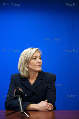 French Front National (FN) far-right party's President Jean-Marie Le Pen presents his 2011 wishes at the party's headquarters in Nanterre, near Paris. Jean-Marie Le Pen will retire as President at the party congress few days later. Her daughter Marine Le Pen (C.) and Bruno Gollnisch run for his succession.
