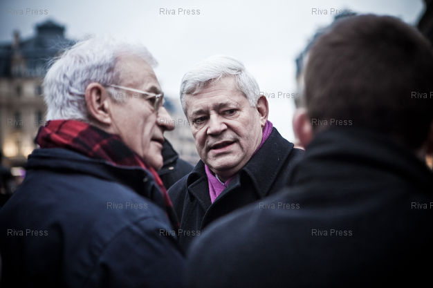 Légende : 23/01/2011 - Paris, FRANCE - Le collectif "En Marche pour la Vie" a organise une manifestation contre l'avortement et pour le developpement des aides à la maternite. Bruno GOLLNISCH, vice-president executif du Front National. PHOTO : RIJASOLO/RIVA PRESS.