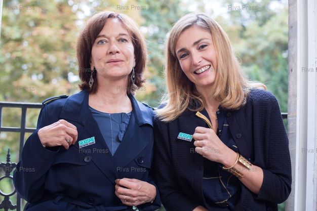 Légende : Laurence Rossignol recoit Julie Gayet au Ministere des Familles, de l'Enfance et des Droits des femmes pour promouvoir la nouvelle operation contre le sexisme dans la societe francaise. Paris, FRANCE- 05/09/2016
