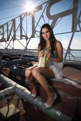Légende : Joyce Jonathan pose sur le toit du Martinez. Cannes, FRANCE-23/01/2011