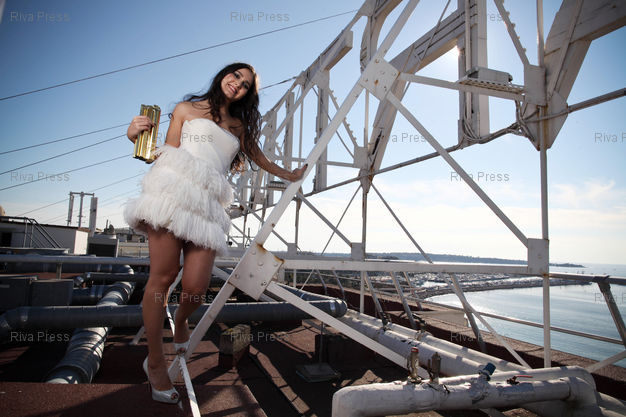 Légende : Joyce Jonathan pose sur le toit du Martinez. Cannes, FRANCE-23/01/2011