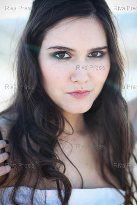 Légende : Joyce Jonathan pose sur le toit du Martinez. Cannes, FRANCE-23/01/2011